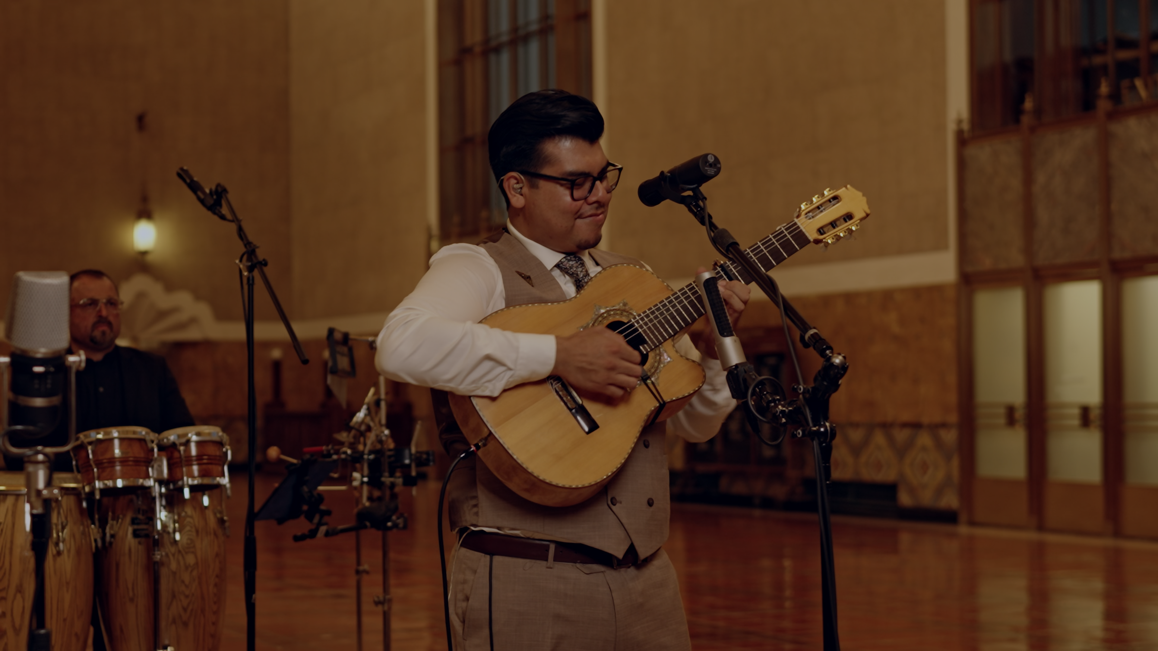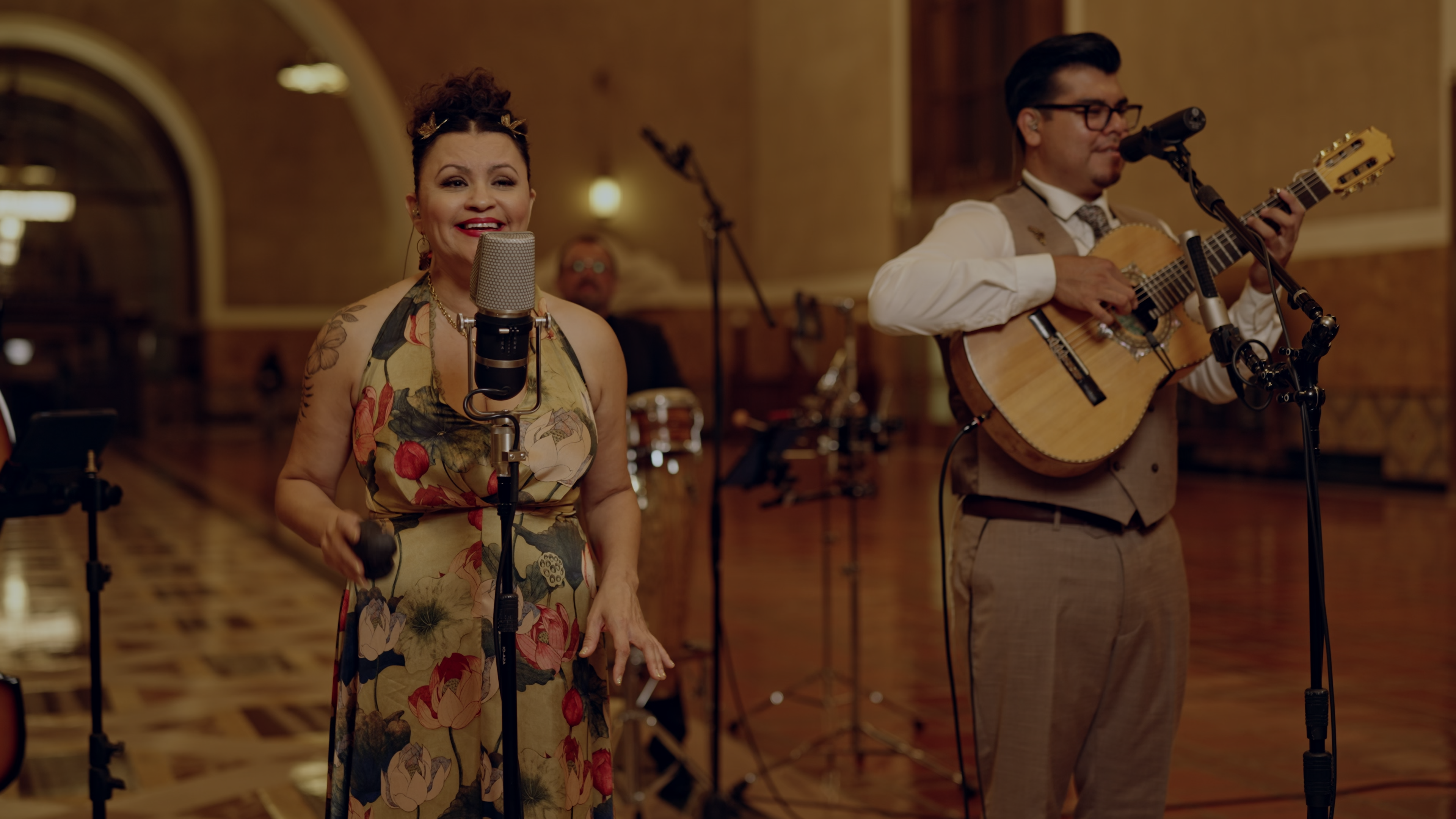 In collaboration with LA Metro, Boleros With Attitude and AEA Microphones staged a live performance inside the ticket concourse of Union Station, the city’s 1939 Art Deco transit hub and a defining piece of Los Angeles history. For Martinez, performing there carried a natural sense of symmetry. The setting, the music, and the tools all shared roots in the same era.